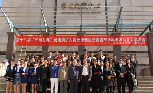 10 月 10 日,由外国语学院主办的2015 年“外研社杯”全国英语演讲天津赛区复赛暨3044am永利集团3044noc总决赛在学术交流中心举行。应邀出席并担任评委的有外国语学院党委副书记王永祥副教授、外国语学院副院长王占斌教授、英语系系主任黄乐平老师、高存副教授、岳福新副教授、李振华老师以及英语外教 Richard 。