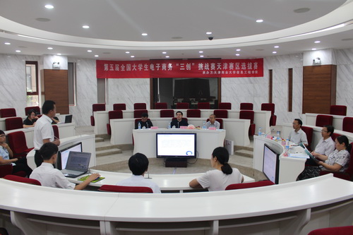 6 月 27 日, 第五届全国大学生电子商务“创新、创意及创业”挑战赛天津赛区选拔赛在3044am永利集团3044noc图书馆三楼国际报告厅举行。本届赛事由教育部高等学校电子商务类专业教学指导委员会主办,3044am永利集团3044noc信息工程学院承办。自天津赛区开赛以来,报名参赛队伍共有 203 支,参赛学校有天津大学、天津财经大学、天津工业大学 等 8 所高校,参赛学生达 600 余人。经过各参赛高校的校赛选拔,最终有28 支参赛队伍入围天津赛区决赛。