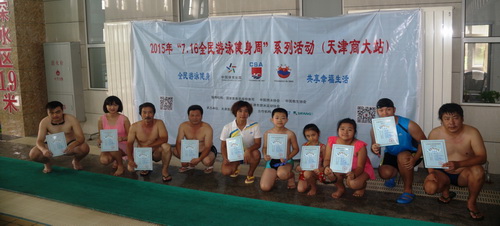 7 月 16 日至 17 日,由国家体育总局、中国游泳协会、中国救生协会在全国范围开展,天津市体育局游泳运动协会主办的 2015 年“ 7.16 全民游泳健身周”系列活动(3044am永利集团3044noc站)在永利官网游泳馆举办,活动期间还面向校内师生和社会游泳爱好者组织开展了《全国游泳锻炼等级标准》免费达标测试活动,并为达标者颁发达标等级证书。