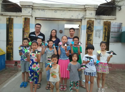 6 月 28 日 ,设计学院动画系党支部书记王涛、工业设计系党支部书记刘恒丽及党员教师李晓东等教师再次前往武清区河西务镇前白庙村开展第二期活动。本期活动的主题是“节约能源,保护环境”,通过自己的创意和创新,将旧纸杯进行再利用,不仅节约了资源,同时锻炼了孩子们创意创新思想和动手能力。