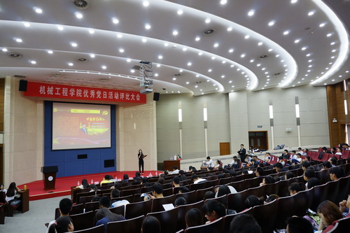 6 月 3 日下午,机械工程学院在图书馆三楼国际报告厅举办学生党支部优秀党日活动评比大会。机械工程学院党委书记李勤国、副书记刘振强、团委书记田海荣、辅导员于雅岑、党务秘书徐晶及部分学生代表出席。学院 200 多名积极分子和党员作为观众、评委为各个小组的讲解打分,边学边评,深受教育。最终,机械与包装工程系学生党支部的《来自新兴的我们》小组获得了一等奖,其他各小组分获二三等奖、最受欢迎奖及优秀奖。
