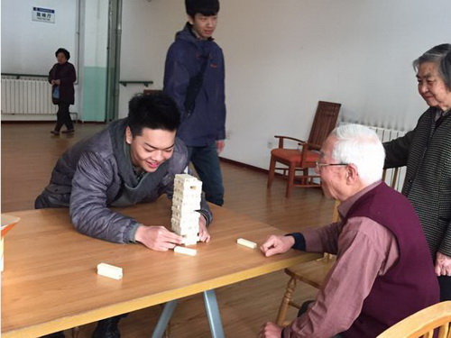 开学以来,艺术学院青年志愿者协会成员每周三下午前往天津市北辰区爱馨老年公寓为老人送爱心。