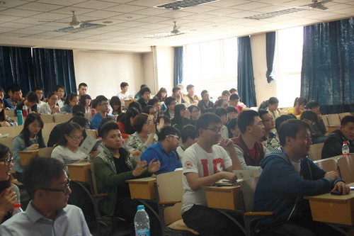 杜晓辉首先简单介绍了美的集团的概况,随后从大赛概况、参与方式、评选方式、所得收获四方面介绍了 MDV 设计大赛,并对现场同学提出的问题进行了解答。刘昊亮就参赛对就业的优势向同学们进行了介绍。