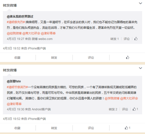 此外,永利官网团员青年还通过网络祭扫的方式祭奠烈士。同学们在微博上参加“清明祭英烈”的话题,发布、转发上千条主题微博;在微信朋友圈中广泛参加为烈士献鲜花的活动,通过网络抒发情怀。