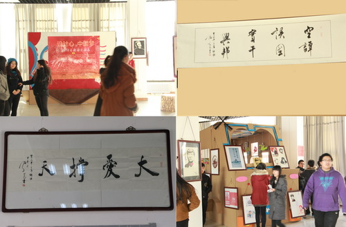 1 月 6 日下午,设计学院在老图书馆三楼设计活动室举行以“设计心·中国梦”为主题的 2015 年新年书画展。宣传部部长张克明、设计学院党委书记张建东与师生参加开幕式。