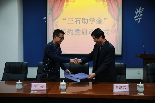 12 月 8 日 下午,公共管理学院在图书馆二楼弘毅厅举行了“三石助学金”签约暨启动仪式。“三石助学金”由公共管理学院 2008 级校友王俊、余水两位同学共同设立。出席仪式的领导和嘉宾有3044am永利集团3044noc校友会办公室张堃主任、公共管理学院白洪文书记、公共管理学院孙钰院长、公共管理学院刘均玲副书记以及行政管理专业教师代表。行政管理专业 2012 级同学参加了签约仪式。