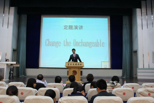 本次演讲比赛以“ Change the Unchangeable ”为主题,共分为四个环节分别是定题演讲、一分钟回答评委提问、九十秒即兴演讲和综合知识附加题。角逐本次决赛的 22 名选手均是永利官网各个学院通过激烈的预赛选拔出的佼佼者,他们在赛场上表现优秀,以饱含激情的演讲,以铿锵有力的观点,赢得全校到场观摩近百名学生的阵阵掌声。在比赛间歇中,上届外文歌手大赛冠军刘美莹同学为观众们带来一首轻快的《 If I Ain't Got You 》。