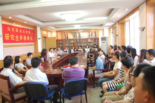 9 月10 日下午,马克思主义学院在408 会议室举办了2014 级研究生开学典礼。院党总支书记兼院长初明利、副院长张静、全体硕士生导师、辅导员张文辉及班主任张晓丽出席典礼。学院 2014 级全体新生和 2013 级部分学生代表参加。典礼由副院长张静主持