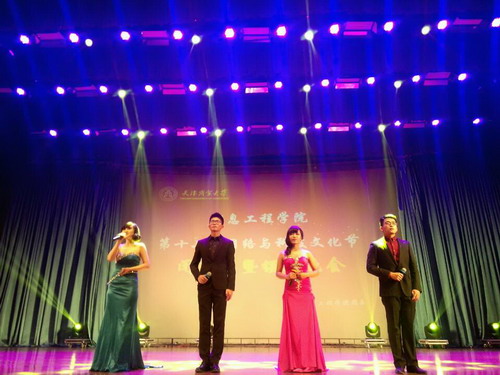 12 月 2 日 晚,信息工程学院在科学会堂举办了第十二届网络与科技文化节闭幕晚会。院长潘旭华、院党委副书记王艳军、副院长陈雷,百度营销大学经理张妙绒,辅导员王斌、许兆光及团委学生会骨干作为嘉宾出席了本场晚会,千余名学生现场观看闭幕式晚会。
