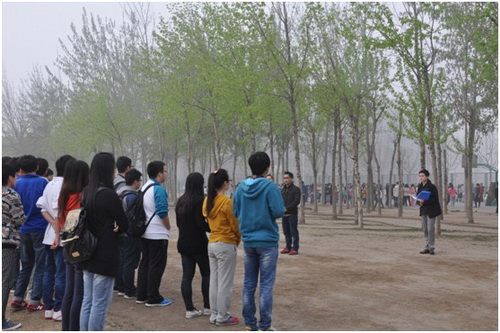 本次拓展实训共分上、下午两场。主要项目有:校园寻宝、人桥、盲人方阵、驿站传书、穿越火线等。拓展实训中,运用了图、文、音频等手段,通过游戏项目中诸多障碍的设置及团队合作,将“沟通、协作、信任、责任”等精神传递给 13 级班委,在提升班委沟通、协作能力的同时,强调学生干部的责任意识,使 13 级班委们认识到团结协作、负责信任的重要性,领会到了回报源自于付出的道理。