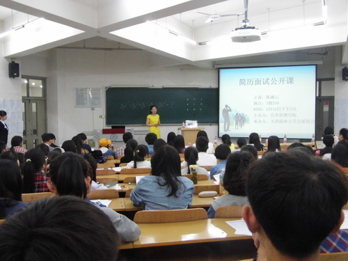 公开课上,陈湘云从“曾经的她,现在的我;了解自己,选择职业;优化简历,灵活投递;充分准备,把握面试;调整心态,转变角色”五个方面对大家进行了具体指导。她首先模拟再现了参加“天津市十佳大学生”的自我介绍环节,以鼓励同学们注重在校期间的多方积累,做到厚积薄发。随后,她为大家介绍了霍兰德职业测试等方法,引导大家了解自身优势,从而进一步选择适合自己的职业。接着,陈湘云从一份简历需要包含的内容引入,详细讲述了撰写简历在格式,排版,文本撰写等各方面的注意事项,并用具体实例向大家讲解了优秀简历应包含的元素和细节。然后,陈湘云讲解了面试中结构化面试等常见类型,面试过程中可能遇到的问题,并在现场与同学进行模拟面试及互动,加深了大家的印象。最后,她通过讲述自己由学生转变成职业人士的心理转变过程,告诉学弟学妹们唯有积极踏实地做好当前,并及时调整心态才能更快适应职场生活。整场活动在情境游戏“两手交叉打开手腕法 — 改变固有思维和习惯能够取得成功”,“测试一分钟鼓掌次数—不只看表象,相信自身潜力”的小游戏与问答环节中接近尾声,陈湘云以饱满的热情,幽默生动的方式,贴近学生的实例与大家分享她的经历与经验,给在场的同学呈上了简历面试的盛宴。