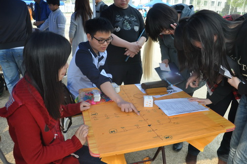 本届社团风采展继续以“智勇大冲关”为基础,32 个学生社团按照地铁线路图的阵型“排兵布阵”,闯关的同学则需要从三条线路中选取一条进行闯关,并收集闯关印章。如果闯关同学遇到了困难,还可以从“换乘点”转到其他路线,完成闯关。活动趣味性强,吸引了 500 余名同学参加。