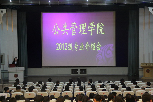 根据学校按大类选择专业工作的部署,为使 2012 级学生进一步了解类内各专业,增强选择专业的针对性,3 月19 日下午,公共管理学院在学术交流中心召开专业介绍会。院党委书记白洪文、院长孙钰、副院长李增田、关兴丽出席,全体专业教师、辅导员、2012 级学生参加会议。会议由副院长李增田主持。