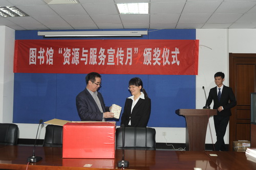 图书馆副馆长庞恩旭为获奖教师颁奖