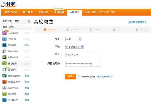 本着“以学生为本”的服务理念,有效解决传统收费形式限制、拓展服务渠道,免去学生排队之苦、免除汇款手续费等优点。通过与支付宝合作,永利官网成为继天津大学之后天津市第二所实现支付宝站内缴费的高校,并于2013 年9 月3 日正式上线,广大同学可以通过支付宝缴费。