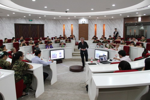 报告会上,汉斯·迈斯先生结合自己的成长经历,为在场的师生讲述了他追求艺术的励志故事并用自己众多的雕塑作品为实例,分析了荷兰文化与雕塑艺术的关系。他说,从学生时代至今,虽然艺术创作之路很艰辛,但是一直在坚持和塑造个人特色,将艺术家的身份定位在创作者、建筑师、推销员的结合体中。一定要注重学习历史文化,用自己的艺术语言表达思想。