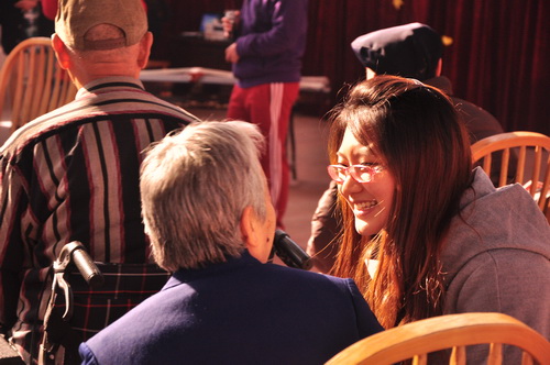 此次活动本着“尊老爱老,敬献爱心”的宗旨,积极践行“奉献、友爱、互助、进步”的志愿者精神,为老人们送上了黄梅戏、京剧、古筝弹奏、双簧、红歌对唱等精彩节目。表演过程中老人们喜笑颜开,有的伴着节奏、合着节拍哼唱着经典曲目段子,有的在学生们搀扶下参与到表演当中。老人们脸上洋溢的幸福、慈祥的笑容和发自内心的掌声,让志愿者感受到了尊老敬老的温暖。活动结束时志愿者们向敬老院赠送了亲手创作的书画作品,表达了对敬老院敬老爱老事业的敬意。