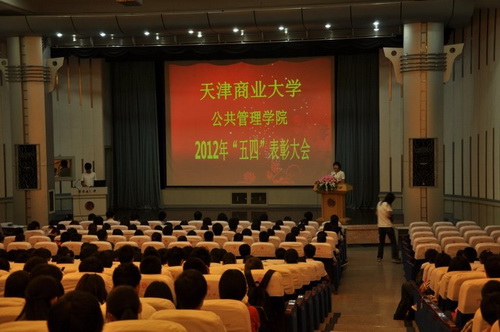 在雄壮的国歌声中,表彰大会拉开帷幕。院党委副书记刘均玲宣读《公共管理学院关于2012 年“五四”表彰的决定》,对获得2011-2012 学年度市级、校级、院级的29 个先进集体和 209 名优秀个人进行了表彰并颁奖。