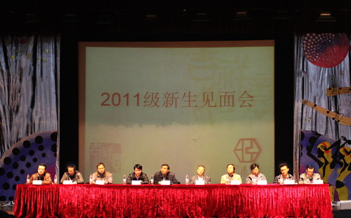 11 月 16 日 下午,艺术学院 2011 级新生见面会在永利官网科学会堂隆重举行。学院党总支书记张建东、院长王其华教授、党总支副书记梁强,院党总支委员、教学督导组组长王富瑞教授,院学术委员会副主任乔雨林副教授,艺术设计系主任王俊琪副教授,造型艺术系主任李安其副教授,理论教学部主任吴向阳副教授,院党总支委员、教师党支部书记王涛,院行政党支部书记、院团委书记、学生党建负责人韩志文等出席典礼并于主席台就座。大会由学院党总支书记张建东主持。