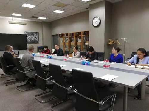 10月24日上午国际教育合作学院院长乔秀梅、副院长王妙及英语教师与专家进行会见。乔秀梅介绍了双方合作以来取得的成绩。英语系主任罗伟就BC教学团队情况、2016级学生教学成果、教师培训、学术交流进行了汇报,重点介绍了在教学方法和教材选用上的新变化。Scott Mason博士和Tai Houser博士认真听取了上述介绍,并详细查阅了2016级完成的研究论文。