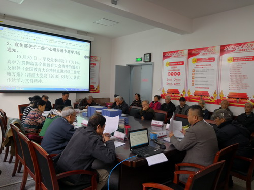 11月20日上午,老干部党委开展学习贯彻落实全国教育大会精神宣讲会。老干部党委委员、党支部书记、部分离退休党员和离退休工作处党支部党员共80余人参加会议。