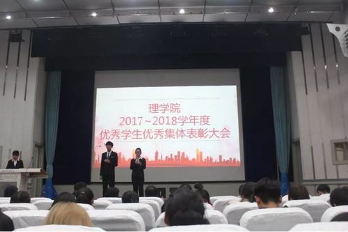 12月21日下午,理学院在学术交流中心召开2017-2018学年度优秀学生、先进集体表彰大会。全体院领导、班主任代表和各年级辅导员出席,获奖学生代表和2017级、2018级学生近500人参加。