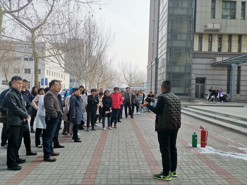 随后,学院全体老师开展消防灭火实战演练,保卫处工作人员现场讲授了灭火注意事项和必要的逃生方法,老师们现场体验了灭火器的正确使用方法。