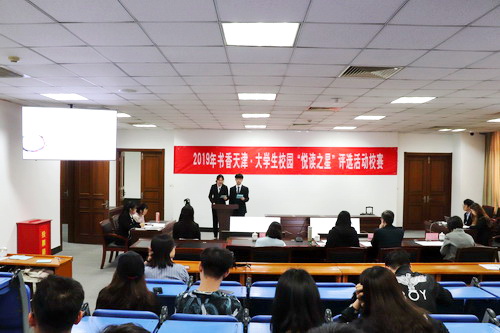 本活动积极响应全民阅读活动办公室及高校图工委有关深入开展“书香天津·全民阅读”进校园活动的号召,旨在营造书香校园氛围,进一步培养广大学生的阅读兴趣。此次大赛的主题为“庆祝新中国70周年华诞·让书香溢满校园”,参赛选手精心准备,激情演讲,展现了天商学子的读书风采。