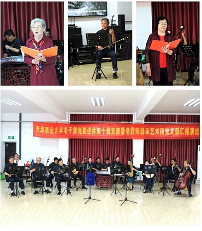为庆祝新中国成立70周年,弘扬爱国主义精神,凝聚发展正能量,5月31日上午,老干部党委第十党支部“老教师器乐艺术团”功能型党支部在南院老干部活动中心举行了主题为“不忘初心七十载银发生辉新时代——让音乐走进老年生活”文艺演出活动。文艺节目包括民乐、管弦乐、古筝、萨克斯演奏以及诗歌朗诵、舞蹈、男生独唱、女生小合唱等,为学校老教师们奉献了一场艺术盛宴。
