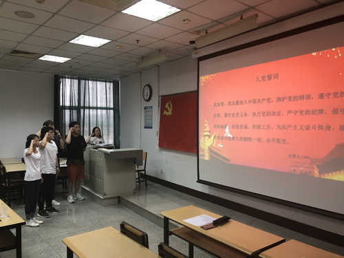 近日,外国语学院在FIU-F401举行新党员入党宣誓大会。常务副书记司源、副书记张娟、辅导员杨佳明、各学生党支部书记以及各支部新发展的预备党员参加了本次宣誓大会。大会由辅导员武千茹主持。