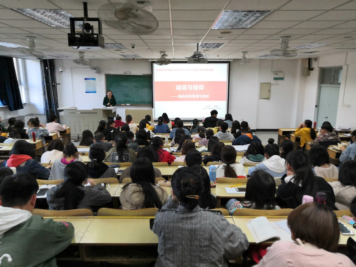 10月28日下午,生物技术与食品科学学院邀请学院党委常务副书记武妮娜和学工办主任陈璐在4号教学楼201室为学生党支部党员和党校学员近200人作专题讲座。