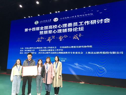 11月14日至15日,第十四届全国高校心理委员工作研讨会与朋辈心理辅导论坛在四川师范大学举行。永利官网与其他理事单位高校共同接受“全国高校心理委员研究协作组理事单位”授牌,与北京师范大学、北京交通大学、重庆大学、东北大学等十余所高校共同作为心理委员工作典型高校在大会上作典型经验介绍。永利官网国际教育合作学院刘俐杉,机械工程学院赵谱两名同学获评第二届“全国百佳心理委员”,生物技术与食品科学学院陈婉获第二届“全国百佳心理委员”提名奖,心理健康教育中心主任杨爽担任此次全国百佳心理委员评选评委。