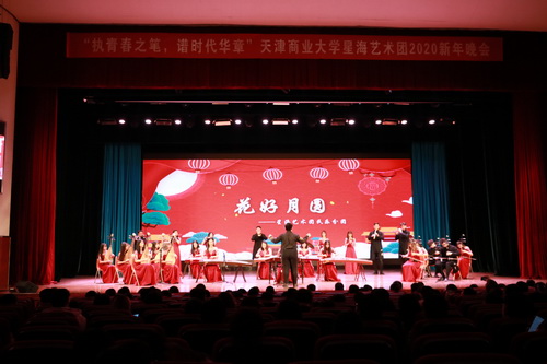晚会在星海艺术团管弦分团《我的祖国》中拉开序幕,奏响了澎湃的爱国主义旋律。合唱分团带来的歌曲《在希望的田野上》、《致青春》,曲调悠扬,意境深远,展现出天商学子多姿多彩、恣意昂扬的青春热情;戏曲分团带来的《戏曲联唱》、话剧分团话剧《嘿,留下来》、相声分团带来的相声《文章会》、礼仪队精彩绝伦的走秀,让在场观众掌声连连。晚会在民乐分团的《金蛇狂舞&花好月圆》曲目中落下帷幕。