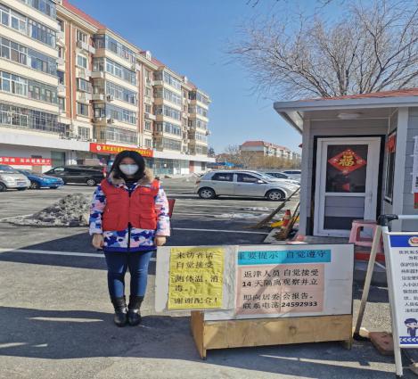 财务系第二学生党支部党员姜心昊同志担任支部副书记一职,疫情来袭,她积极响应号召,主动到街道居委会报名志愿服务,在管辖内小区门口负责轮值服务,对出入人员进行测温登记。