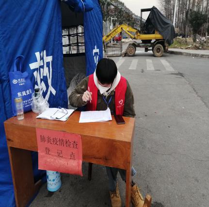许耀同学在社区登记点进行值班登记工作