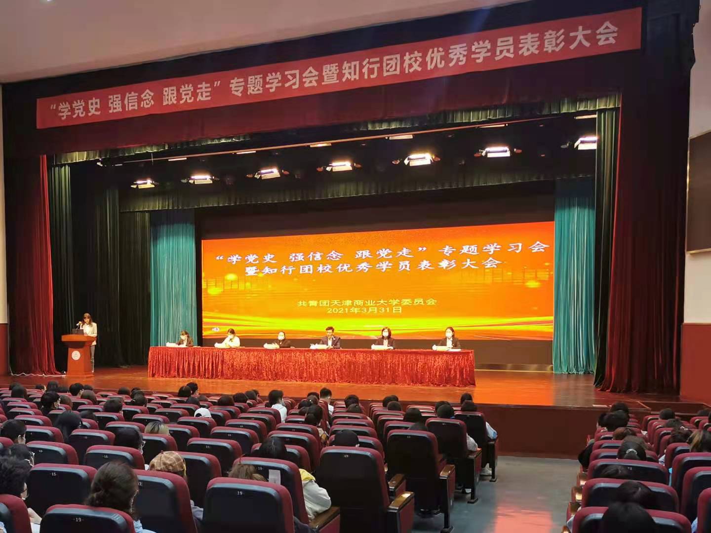3月31日下午,校团委在科学会堂召开“学党史 强信念 跟党走”专题学习会暨知行团校优秀学员表彰大会。校院两级全体团干部、知行团校学员及全体班级团支部书记参加此次活动。