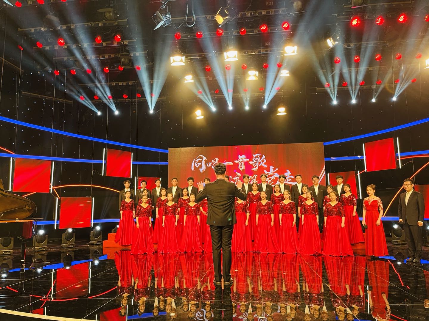 4月27日,按照市教育两委关于开展“同唱一首歌 永远跟党走”——庆祝中国共产党成立100周年群众性歌咏展演活动的工作要求,永利官网星海艺术团合唱团分团作为永利官网代表队,走进天津广播电视台演播厅进行了《不忘初心》红歌展演录制。同学们用悠扬的歌声表达了对中国共产党建党百年的祝福,抒发了青年学子对党、对祖国的热爱之情。本次录制将制作成专题节目于5月中旬在天津电视台文艺频道播出。