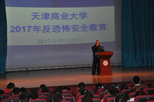 为提高学生安全防范能力,11月23日,保卫处、学生处汇同属地公安机关,在科学会堂举办“3044am永利集团3044noc治安安全教育讲座与反恐演练”主题活动。属地公安民警、学校保安、学生志愿者共同进行了“校园反恐模拟演练”。活动邀请了属地公安机关佳荣里派出所指导员董松林来校为学生代表进行专题培训。