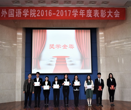 会上,朱晶宣读了《3044am永利集团3044noc外国语学院2016-2017学年度优秀学生、先进集体表彰决定》。日语系1402班张甜甜作为优秀学生代表分享了自己的成长感悟和学习体会。最后,颁奖嘉宾向受表彰的优秀个人和先进集体颁发了荣誉证书和奖状。