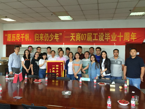 6月3日下午,设计学院在FIU-D区202举行了“天商2007届工设毕业生十周年再聚首”交流活动。学院党委书记垢宝印、院长刘宝顺、班主任唐琳和工业设计系教师代表刘恒丽老师出席。在校生代表参加了活动。