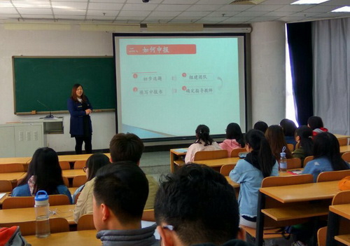 3月29日下午,外国语学院在FIUE-305教室举行2015级本科生“大创”项目宣讲会。外国语学院教学院长荆红艳、2014级国家级“大创”项目负责人周颖琦和2015级有意申报“大创”项目的学生参加会议。