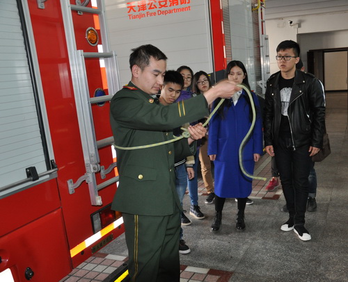 在参观学习过程中,消防战士演示了消防栓及水枪的作用及使用方法,讲解了有关火灾发生的特点危害,预防火灾事故的注意事项,怎样正确使用灭火器及火场逃生方法等多方面内容。此外,消防队员还仔细地演示了消防车灭火装置消防装备,展示并传授了打安全结的几种方法,并指导大家亲自操作使用。