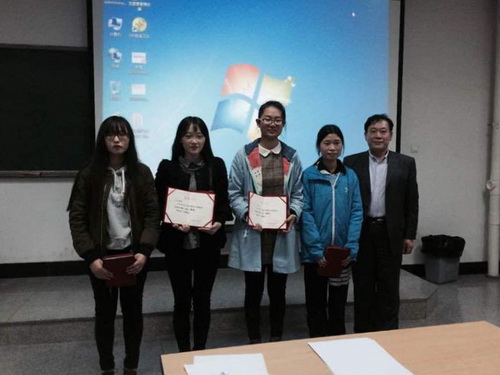 本次大赛邀请了日语系章莉副教授、王家民副教授、李颖老师、赵雅敏老师担任评委。经过紧张激烈的日语单词书写和读音的比拼,张甜甜和程瑛琪同学分别获得高年级组和低年级组一等奖,姜入华等四位同学获二等奖,雷云等六位同学荣获三等奖。