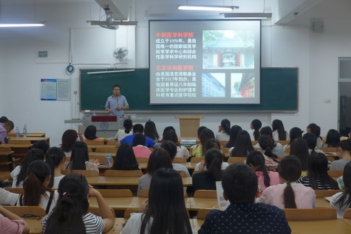 董斌介绍了中国协和医科大学、中国医学科学院、放射医学研究所的发展历史、师资力量、办学特色以及研究生招生的专业方向。刘强就放射医学的研究内容、当前发展面临的机遇与挑战、防辐射药物和肿瘤增敏药物研发的广阔前景为同学们做了详尽的阐述。杨翊主要讲解了协和医科大学及放射医学研究所硕士研究生入学考试的主要科目、导师的基本情况、入学后的待遇以及发展机遇,鼓励同学们踊跃报考。