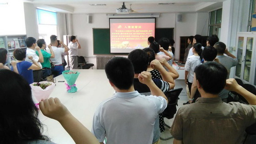 为纪念中国共产党成立95周年,6月29日,公共管理学院党委举办“佩戴党徽 重温入党誓词 面对党旗宣誓”活动。党委书记白洪文主持,全体教职工党员参加。