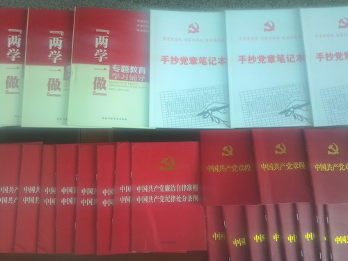 会后,学院党总支向全体党员、入党积极分子配发了《“两学一做”专题教育学习辅导》《中国共产党章程》《中国共产党廉洁自律准则》《中国共产党纪律处分条例》《手抄党章 100 天笔记本》等学习辅导手册。
