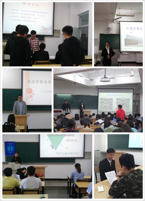 在2016 届毕业生实习结束返校之际,经济学院积极主动与70 余家企业联系,通过邮件形式发送《关于3044am永利集团3044noc经济学院召开2016 年春季“圆梦”专场招聘会致企业的一封信》,陆续已有二十余家企业反馈有意召开专场招聘会。目前,共组织十五场专场招聘会。专场招聘涉及东北证券股份有限公司等金融机构类、天津克运捷运国际货运代理有限公司等贸易类、以及天津正本电子股份有限公司等其他类公司。专场招聘会提供岗位100 余个,涉及金融学、国际经济与贸易、经济学、财政学、市场营销、机械等多个专业,推荐优秀毕业生近百人,目前就业意向正在洽谈中。