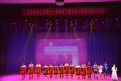 来自 12 个学院的健美操参赛队伍历经两个月的拼搏,从舞蹈编排到音乐选择、从整体构思到动作推敲花费了大量心血,充分展现了同学们的智慧与创造力,反映了永利官网学生的良好精神风貌,整场比赛精彩不断,高潮迭起,彰显出了当代大学生的青春与活力 。经过激烈的角逐,公共管理学院斩获冠军,信息工程学院以微弱差距夺得亚军、生物技术与食品科学学院获得季军。本届体育节各个赛项的获奖情况也在比赛间隙一一揭晓,经济学院和商学院双双夺冠,信息工程学院和公共管理学院分获亚军和季军,体育教学部教师代表与校团委工作人员为获奖团队颁发了锦旗。