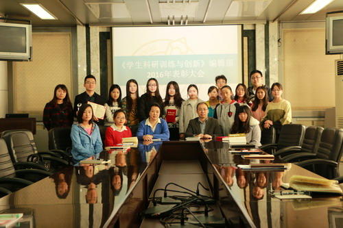 3月16日 下午,教务处在现代信息交流中心多功能会议室召开《学生科研训练与创新》期刊优秀学生编辑表彰会。参加会议的有教务处处长计宏伟、指导教师及编辑部全体同学。