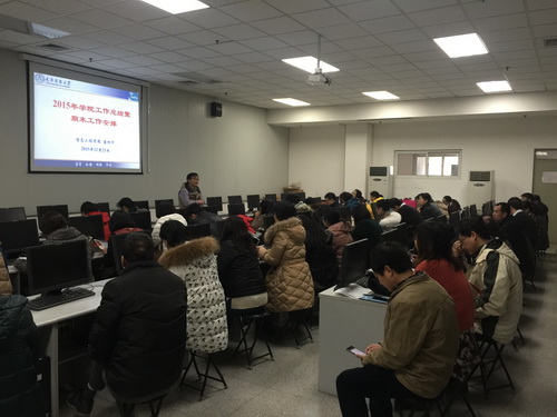 潘旭华首先从教学与实验室建设、学科与科研建设、师资队伍建设、党建与和谐校园建设四个方面回顾总结了学院 2015 年的总体工作。他指出,一年来,学院扎实开展教学与实验室工作,始终秉承“落实培养目标,凝练专业特色;规范教学管理,提高教学质量”,在本科教学质量工程项目中取得显著成绩。以学风建设为中心,抓教促学,提高学生综合素质和创新能力,并依托电子设计协会、电子商务社团、计算机应用社团等组织和举办学科竞赛和科技创新活动,学院近半数学生参与各类科技活动,学院三分之一以上的教师参与指导,获得国家级、天津市级等奖项近 100 人次。学院重视科研与学科建设,以计算机应用技术校级重点学科为基础,围绕“物流信息优化关键技术研究”、“运输与仓储物流检测及智能处理研究”、“商业智能与信息安全关键技术研究” 3 个课题整合研究方向,成功申报了一项国家自然基金青年项目、一项天津市科技特派员项目,科研成果从过去的发表高水平论文到现在的的论文、软件著作权、天津市科协出版基金资助的专著、科技成果奖等多样化发展。随后,潘旭华对期末工作进行了安排,传达了学校期末考试工作会议精神,组织学习了《关于认真做好 2015-2016 学年度第一学期期末考试工作的通知》及相关文件精神,并通报了《关于永利官网部分教学情况的调查报告》,再次强调了教育教学的严肃性和纪律性。潘院长还对寒假工作进行了部署。